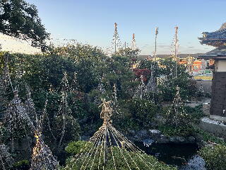| 冬本番が近づいて参りました。今年も笠原造園さんに境内の冬囲いをしていただいております。暑い時も大変ですが、秋が深まってくると寒さも厳しきなります。雪吊りは冬の風物詩でもあります。宜しくお願い致します。 |